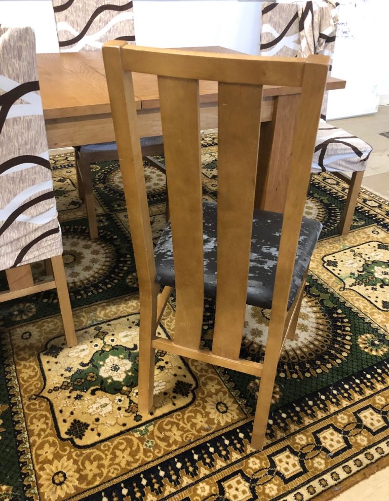 The chair seat pads are worn due to age, hence giving away for free. They could easily be reupholstered, and we’ve been using them with full chair covers so worn area is covered up.