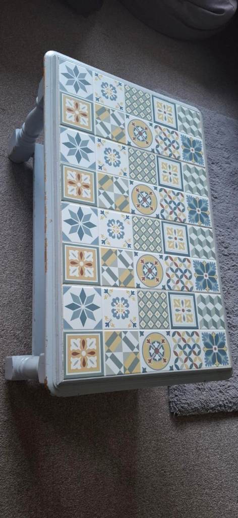 Pine coffee table with tiled top that we upcycled a few years ago.