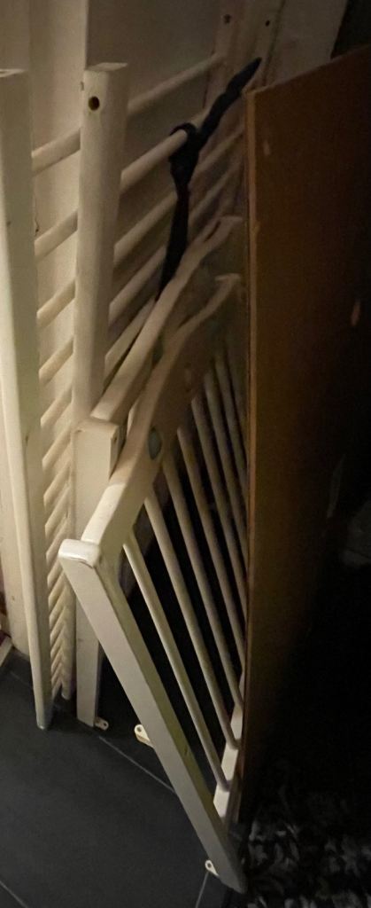 This baby cot has all the pieces unsure if but has been stored in loft so unsure if all fixtures included. Therefore, available for parts.Collection is free from LE5 asap