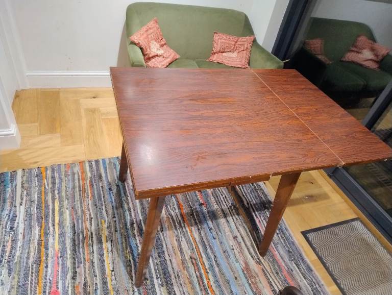 Measures 77 x 77cm - extends with a leaf either side to a maximum size of 138 X 77cm. Some minor scratches/wearing but this is a good solid table.