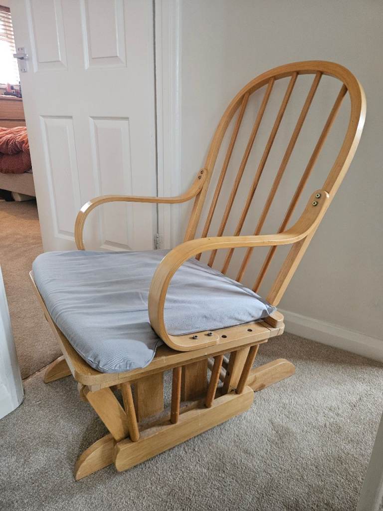 Wooden rocking chair. We've used this for our toddler for the past 18 months. It needs a bit of tlc as the guides are not entirely smooth flowing (there's a slight clunk midway through the run) and there is a squeak. I'm sure somebody with DIY skills could easily upcycle.