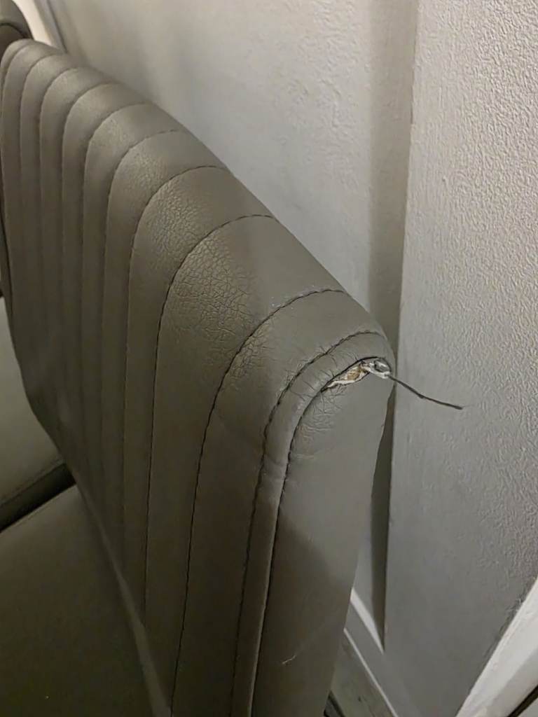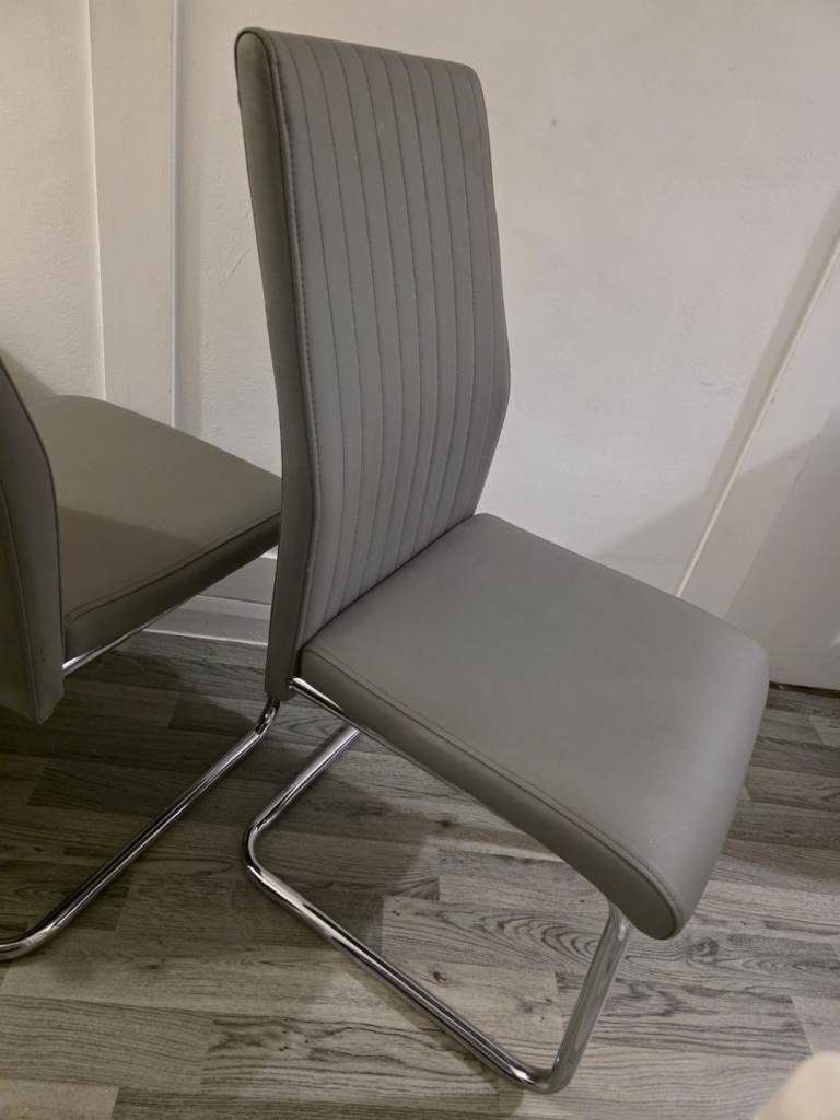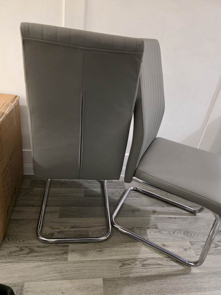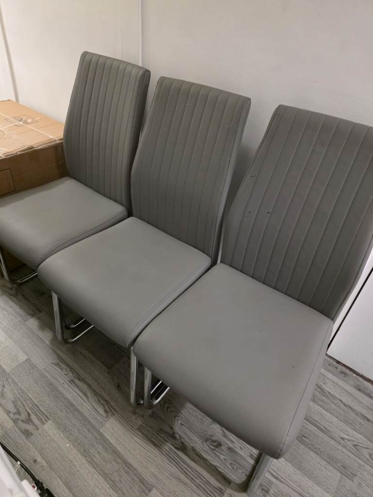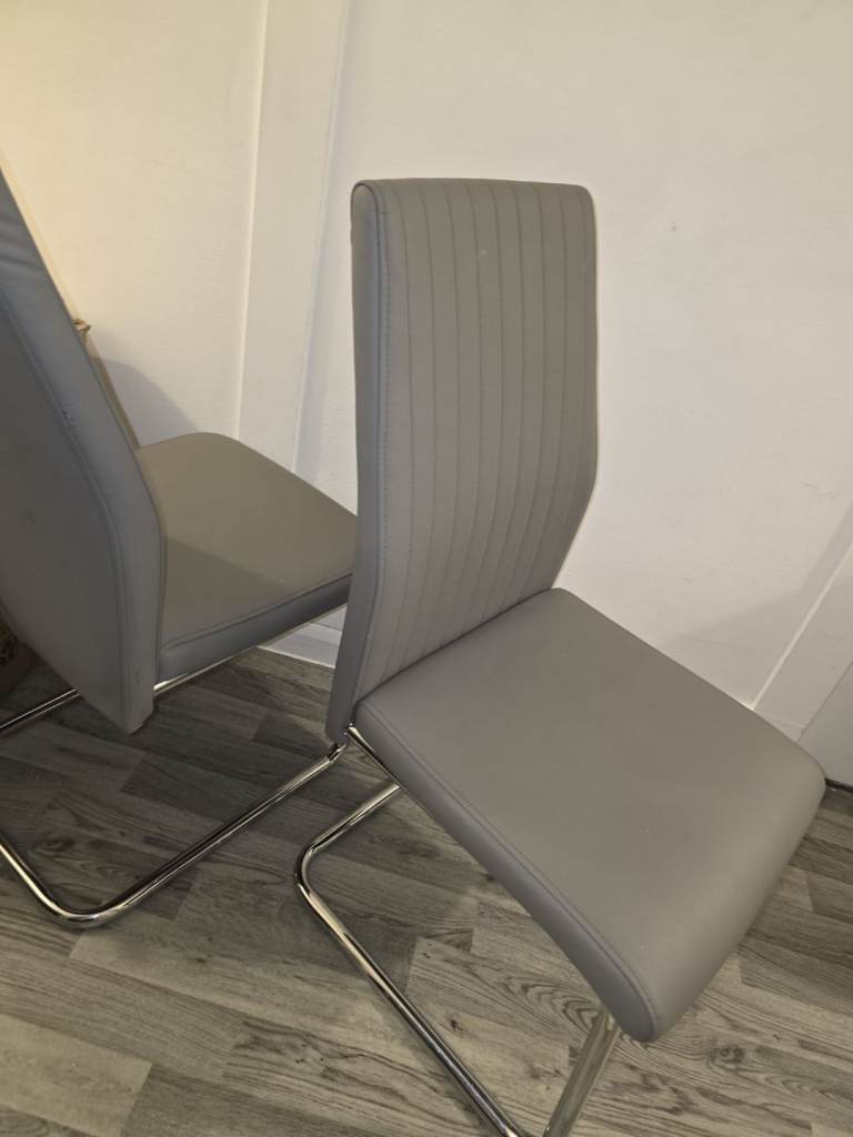 Posting for 5+ yearsX4 leather grey chair good condtion one has slight holes
