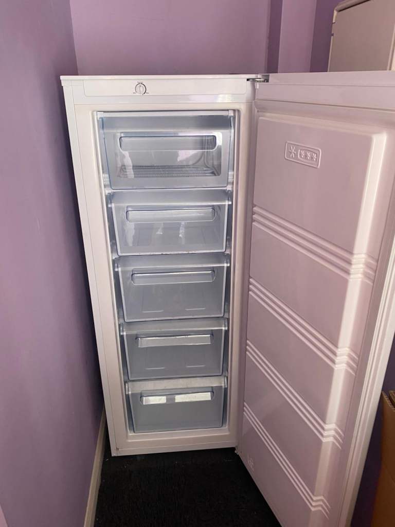Slim, Space-Saving Design – Standing at just 55cm wide, this vertical freezer provides large storage capacity with a small footprint. Finished in clean white, it fits seamlessly into any kitchen or utility space.
