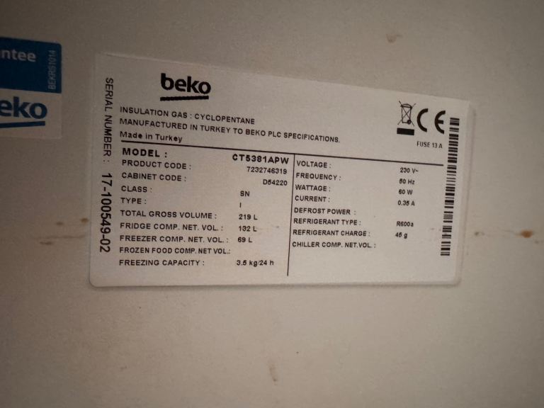 Really good condition beko fridge freezer for sale. Selling as kitchen refit has included an integrated fridge.