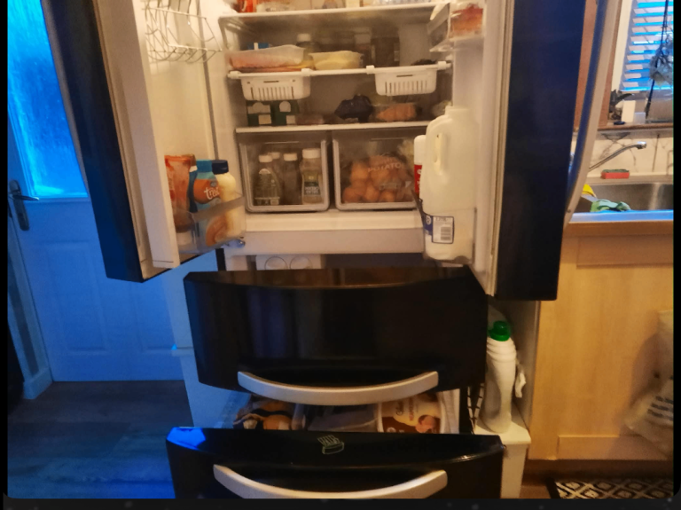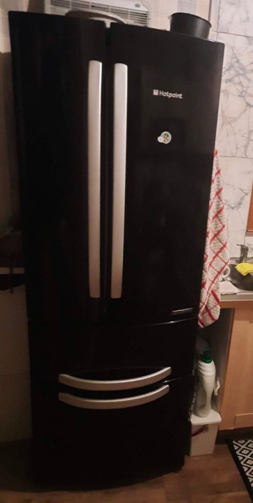 Black American style hotpoint refrigerator and freezer