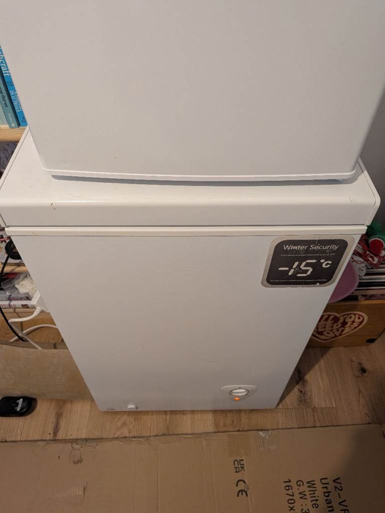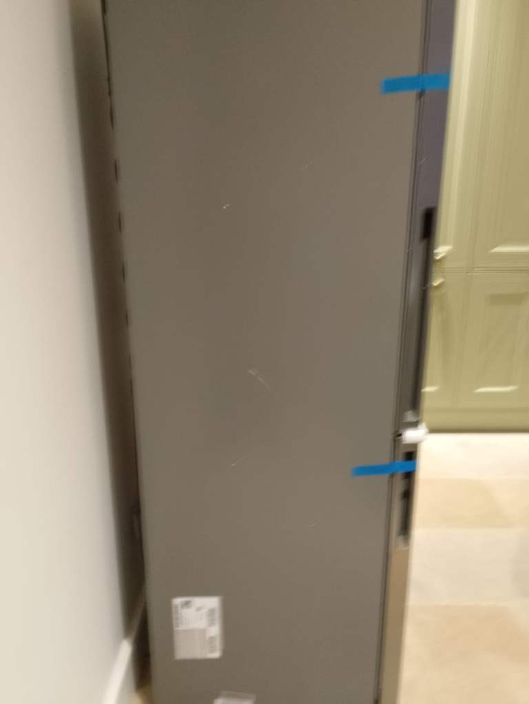 New and unused unopened Fridge/Freezer. Small scratch on the side (see pic) that occurred in delivery. You can register for warranty etc.