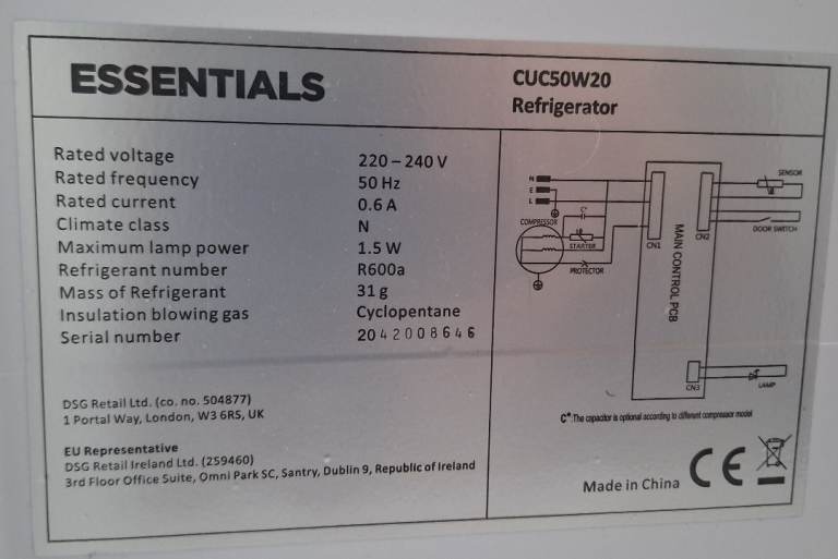 Essentials under counter fridge freezer model number:CUC50W20. In excellent condition 3 years old