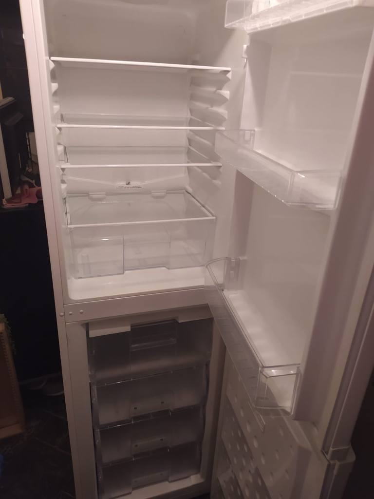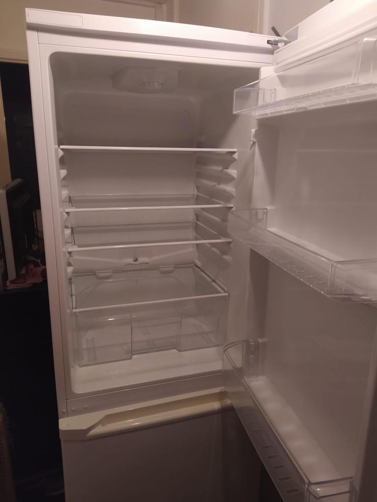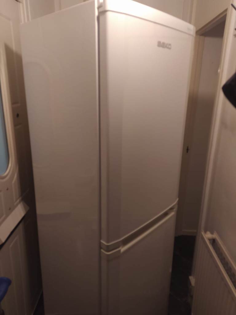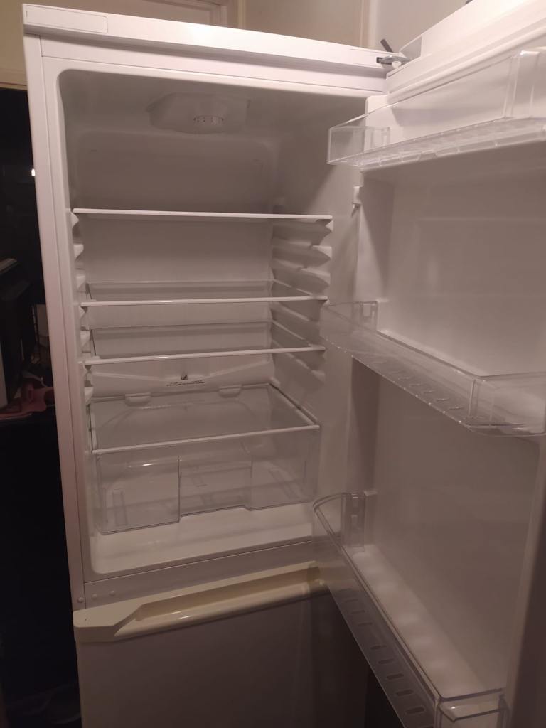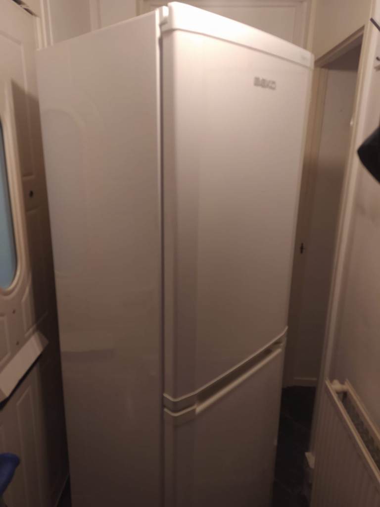 Beko CDA543FW/2 fridge and freezer. Frost free technology. Refrigerator capacity 157 litres and freezer capacity 87 litres. Professionally cleaned spotless. Perfect working condition only selling as i have a larger fridge now. Measurements are height 183cm, width 54.5cm and depth 60cm. Can also be delivered for £30 on top of selling price if you don’t have your own means of collecting.
