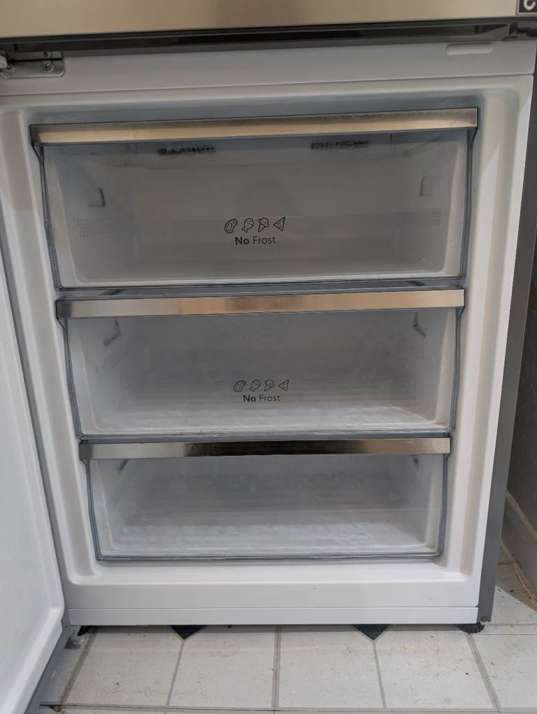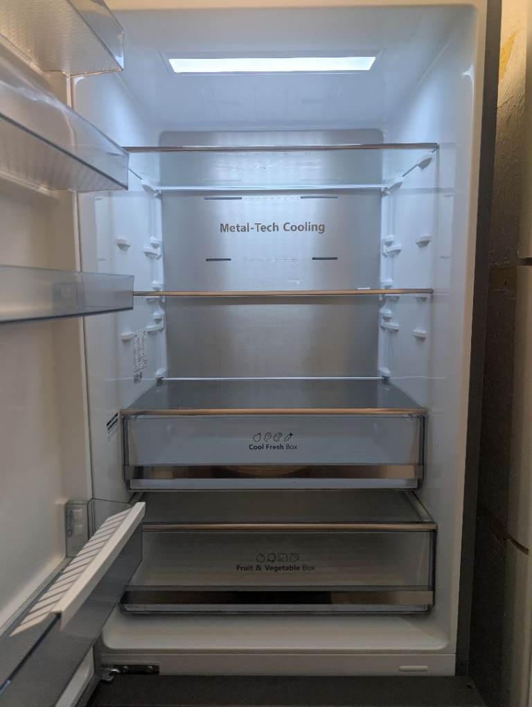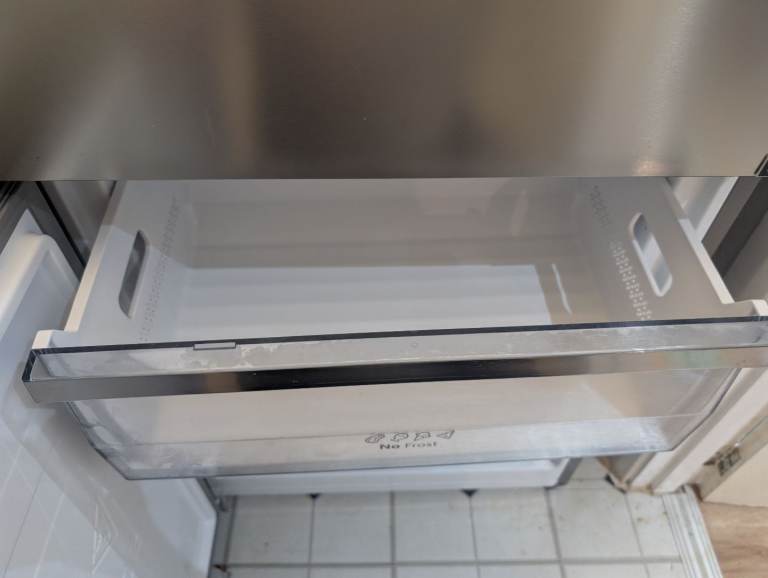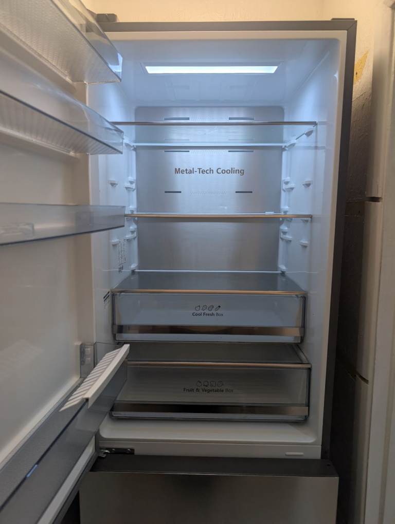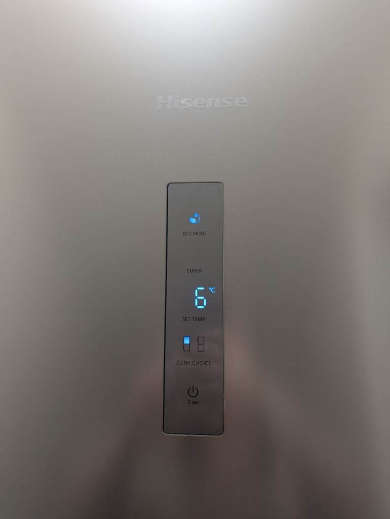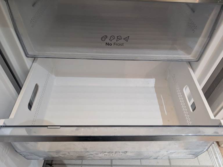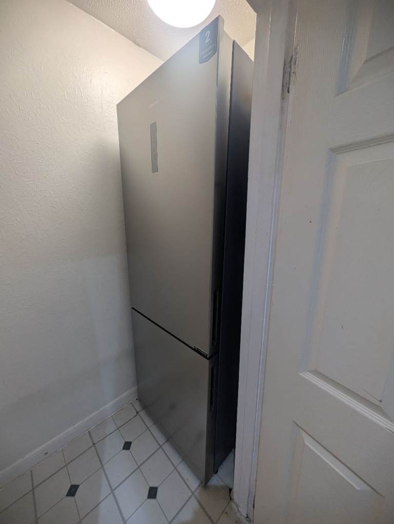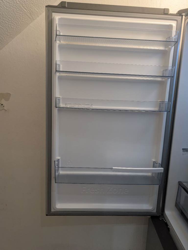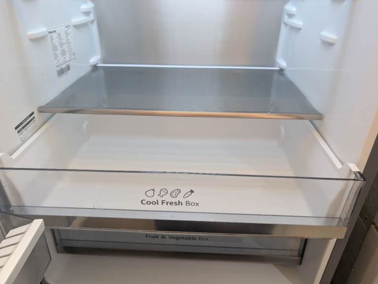 Large size HiSense free standing fridge freezer purchased 18 months ago, almost as good as new, working perfectly. Door is adjustable depending on which side you want it to open from. Ideal fridge for a family or house with more than two occupants.