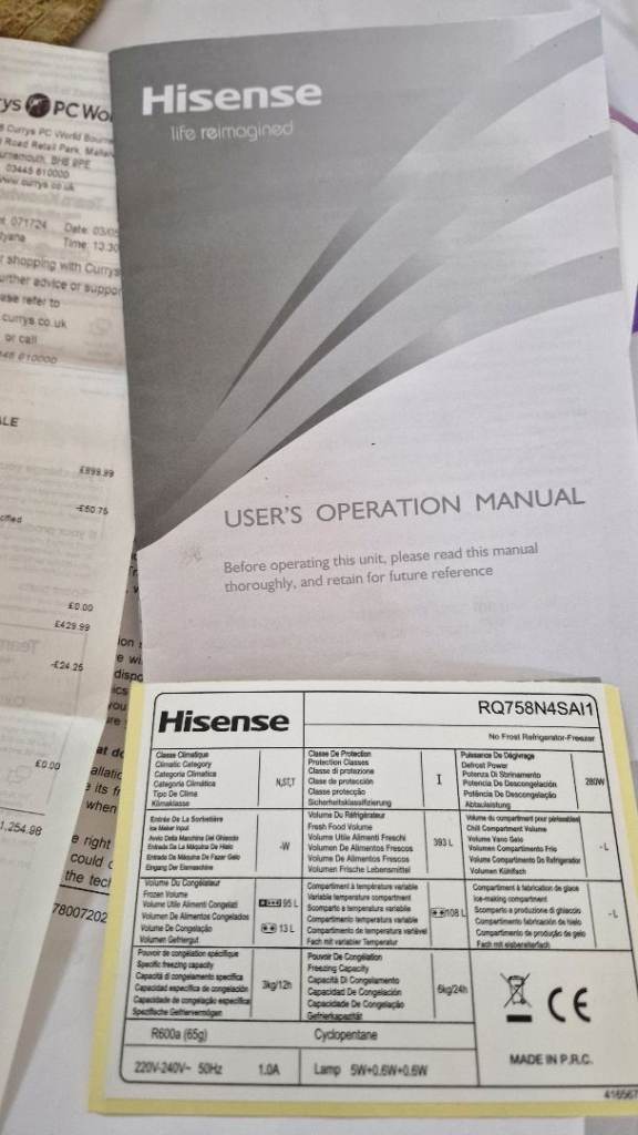 Hisense RQ758N4SAI1 American-Style Quad Door Fridge Freezer