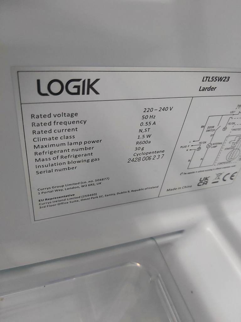 Logik almost new larder fridge 55 cm wide by 145 cm height excellent condition perfect working order free delivery no time waster