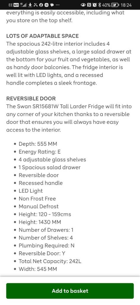 Fully working - only 1 year old selling due to getting a fridge/freezer