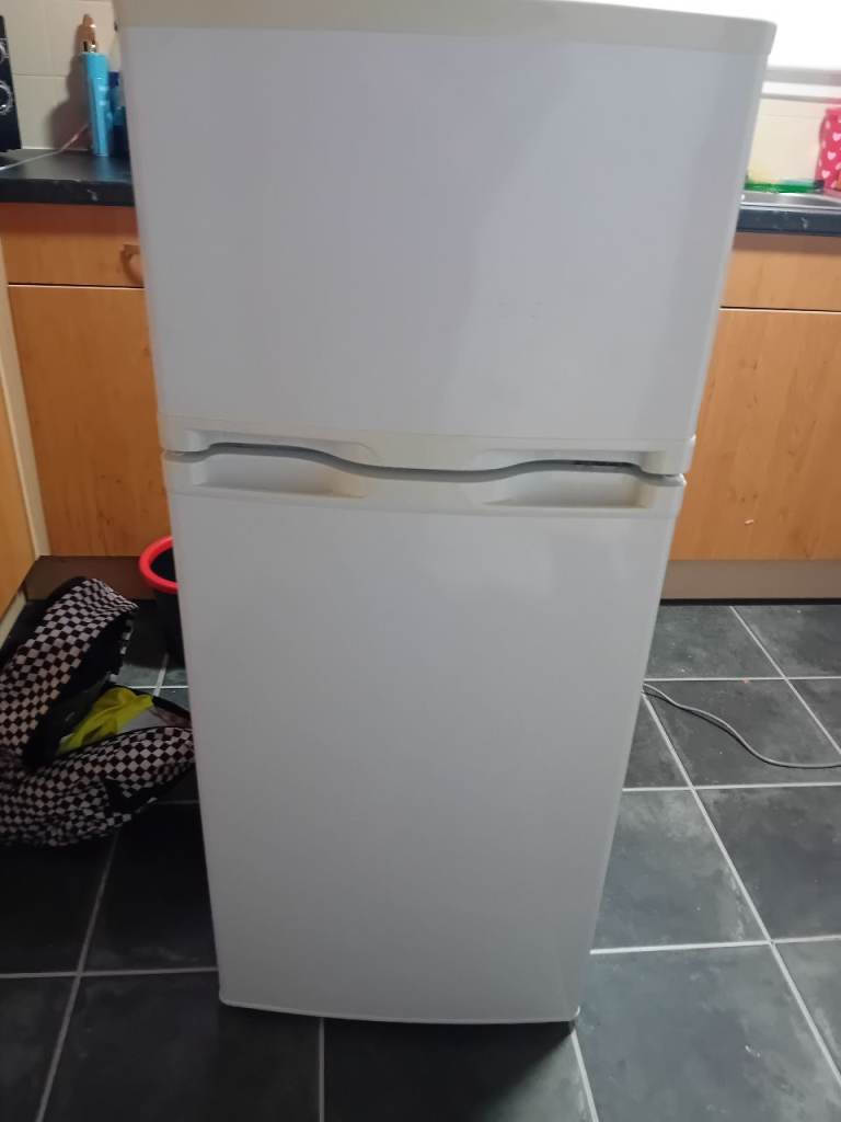 A reliable white fridge freezer, perfect for a smaller kitchen or as an extra unit.