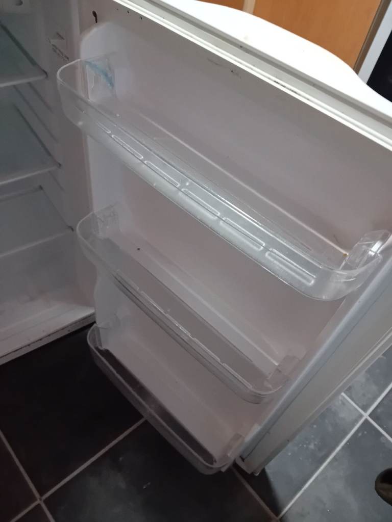 It's in good working order, with clear shelves and door compartments.