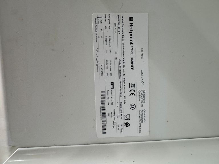 Hotpoint 70 CM Wide 200 Height White Colour Fridge Freezer With Free Delivery π
