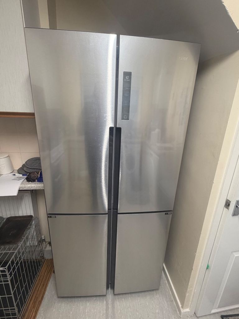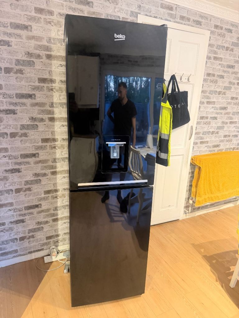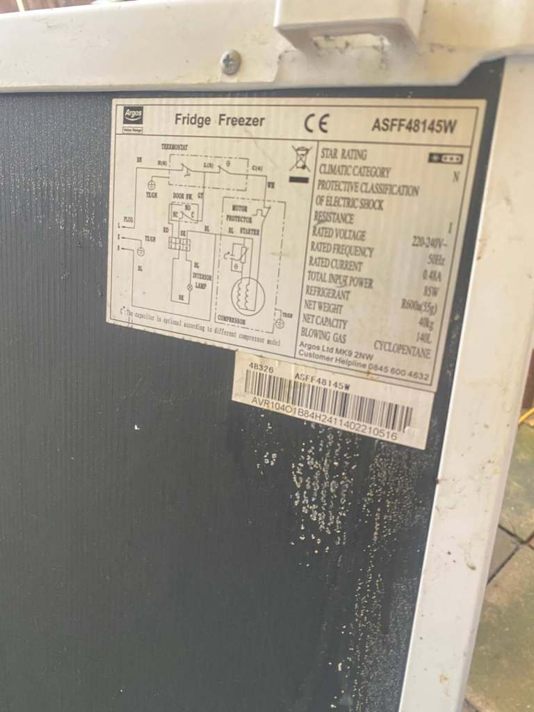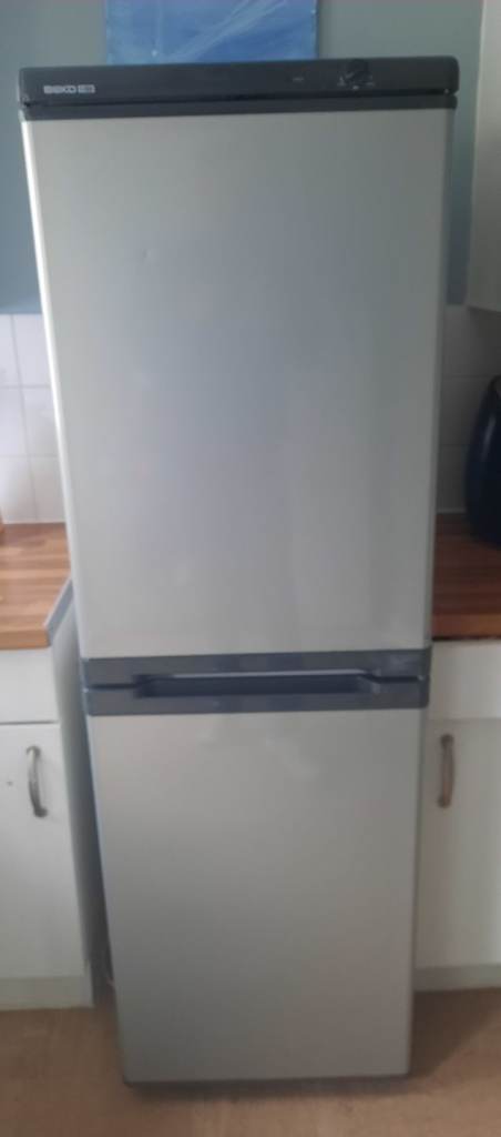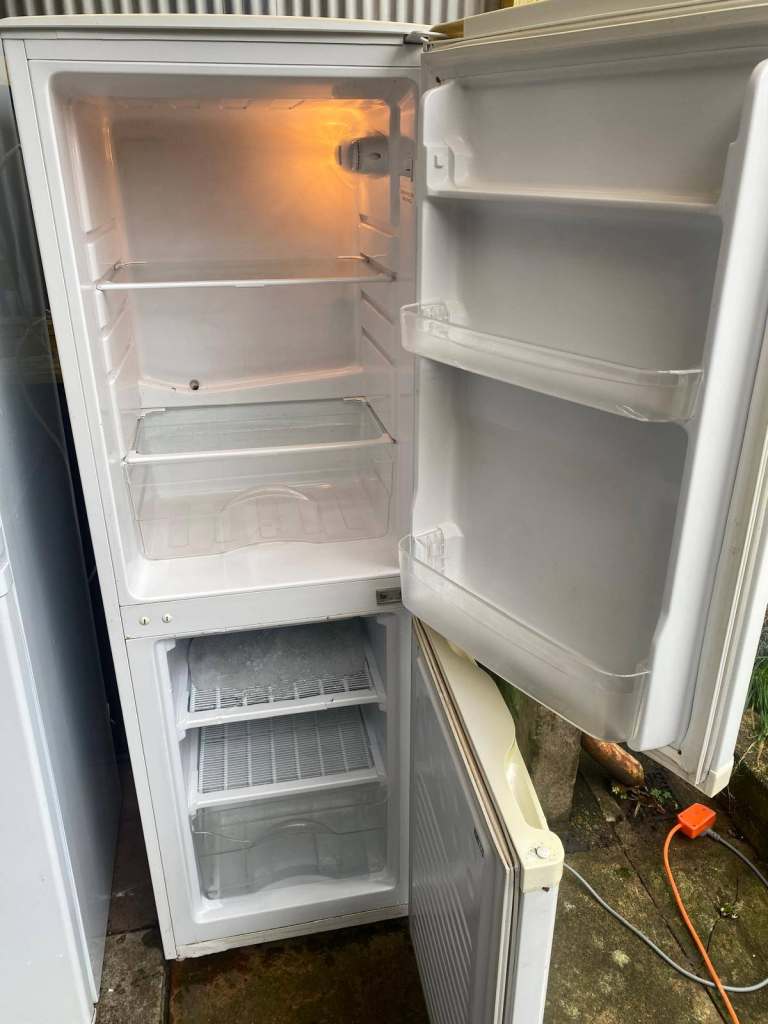 Fridge and freezer compartments, with normal cosmetic wear consistent with age.