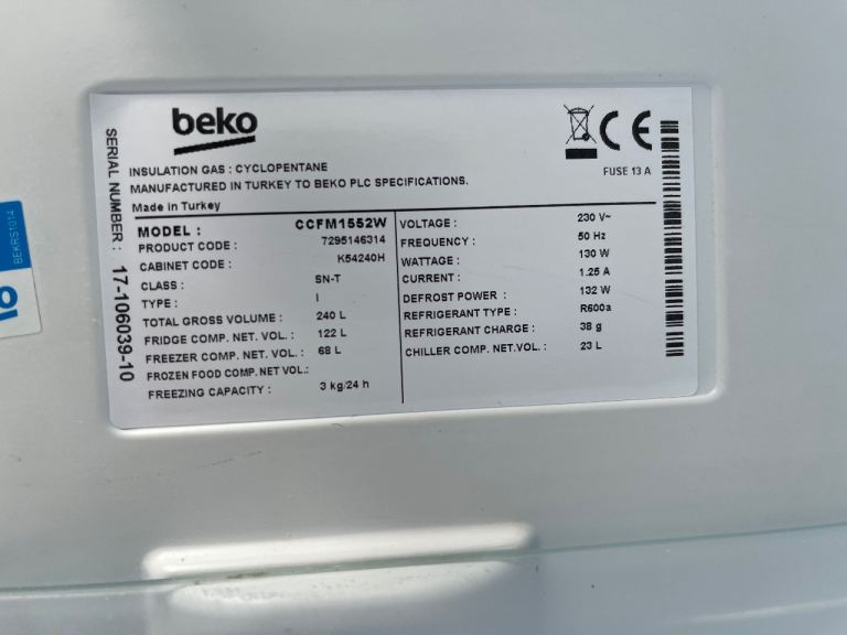 Beko frost free fridge freezer £120 delivered