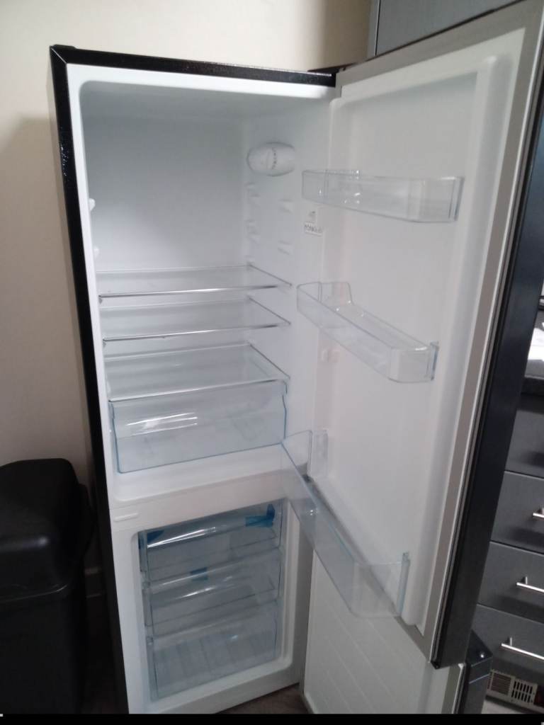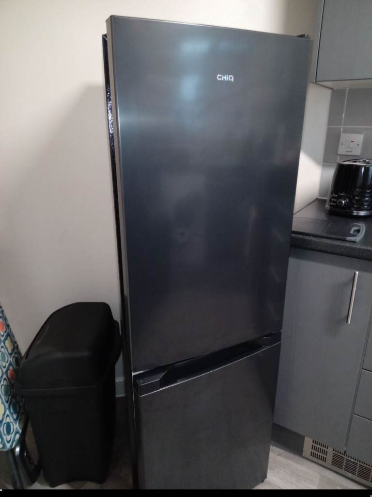 This small (height 1140 width 474 diameter 495) black CHIQ fridge freezer is only 6 months old was brought for £230 and being sold for £150. It is good as new jus has very slight marks on the top front of the fridge door you can slightly see the marks in the front top door images hardly noticeable. It comes complete with operation manual.