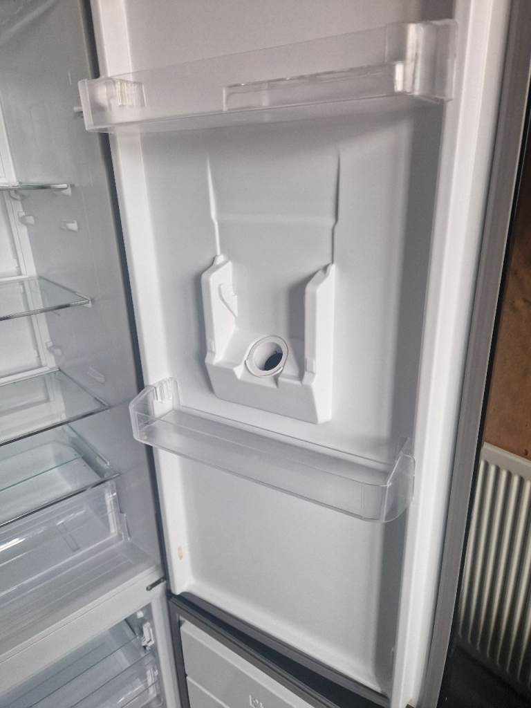 Bush fridge freezer in good working condition, fully cleaned and ready to use. Includes a built-in water dispenser.