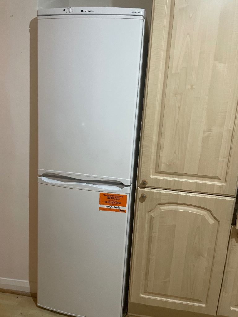 White small fridge & freezer all shelving inside great condition works perfectly call Jon pick up only L26