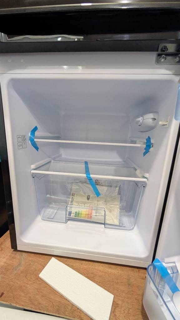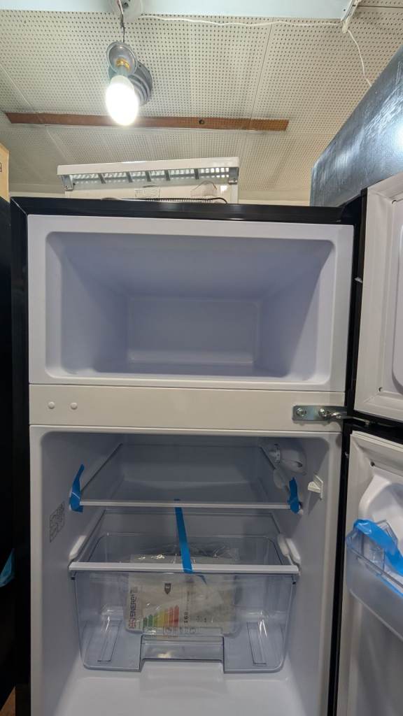 This sleek, under-counter fridge freezer is designed for smaller kitchens or spaces where saving room is essential. With its classic black finish, it blends effortlessly into any decor. Offering 80L of total net capacity, the fridge provides 56L of space, ideal for storing your daily essentials, and the 24L freezer compartment offers a handy space for frozen items. The fridge includes a single shelf, and the freezer section is simple and functional without the need for complex storage solutions.