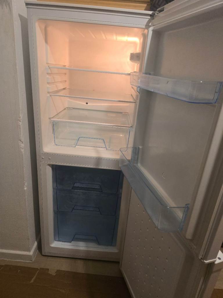 Medium size fridge freezer in perfect working order, nice clean condition. It's 49cm wide and 145cm height. Missing fruit drawer in the fridge and freezer drawers are cracked hence price . All drawers are still usable. I can deliver free of charge in Glasgow. I CHARGE EXTRA MONEY IF YOU HAVE STAIRS OR STAY OUT OF GLASGOW. PRICE IS FIXED WILL IGNORE OFFERS
