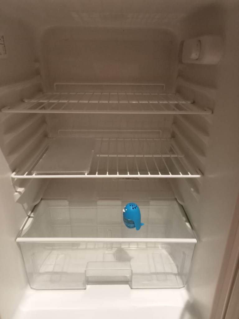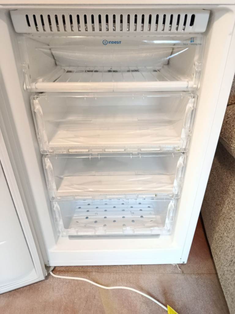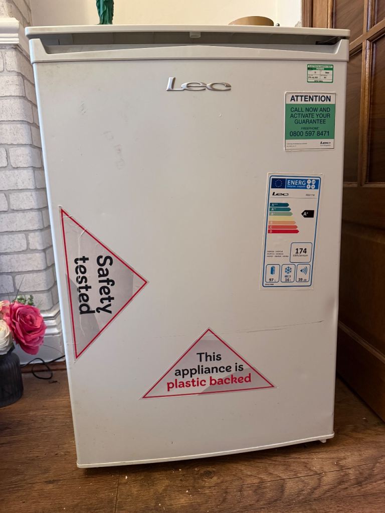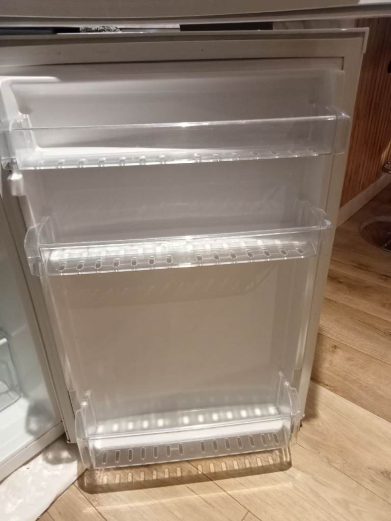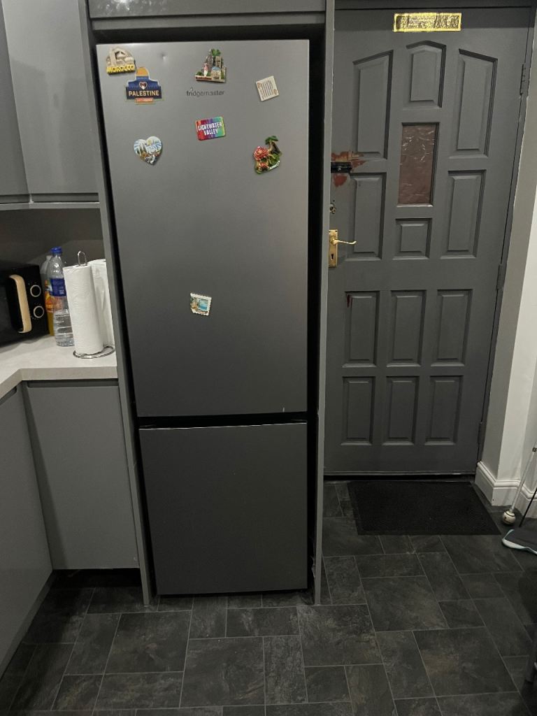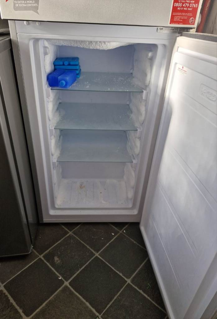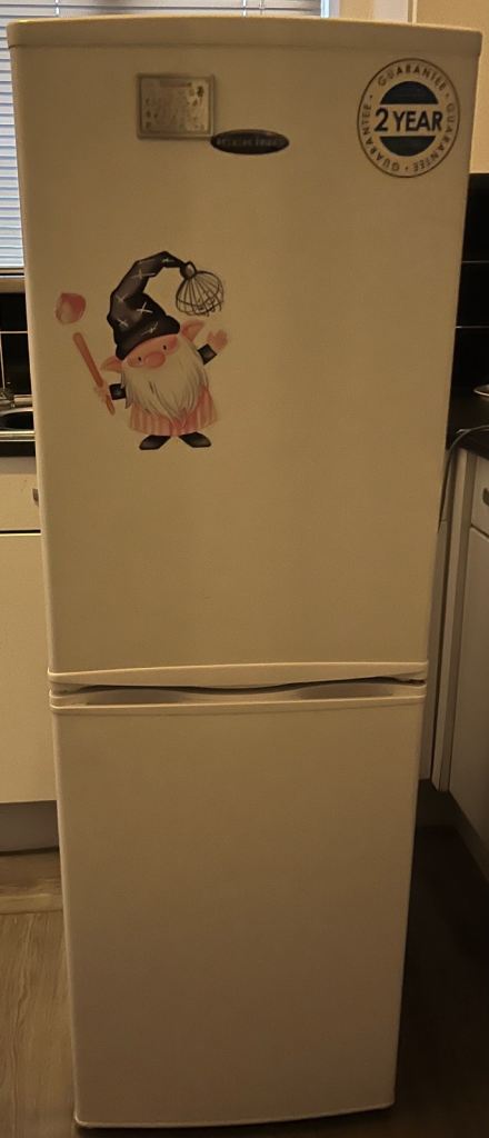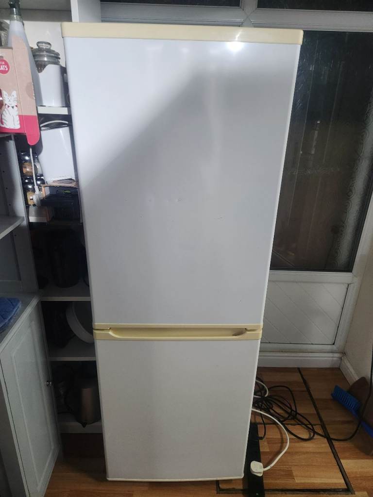 Fridge Freezer for Sale - Clean and Fully Functional. This used fridge freezer is in good working condition, with only a few minor cosmetic marks and dents (as shown). It's been well-maintained, clean and ready for use.