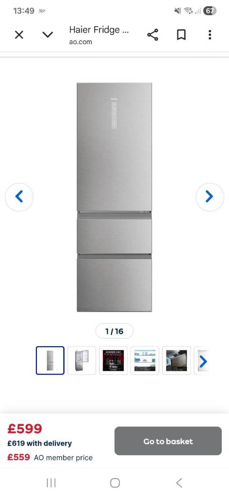 Selling a Haier fridge freezer in excellent condition, only used for a few months. It works perfectly and is very clean inside and out.