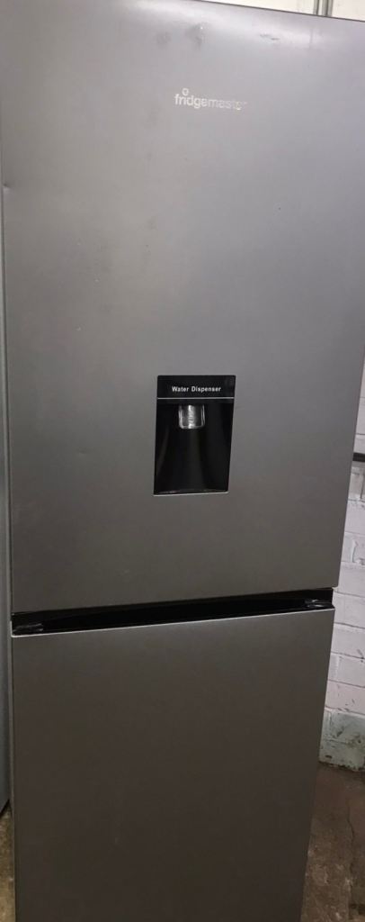 Fridge Freezer brushed steel fridgemaster, drinks dispenser to fridge door. frost free, very nice condition, and perfect working order. possible local delivery and demonstrate 100 pounds.