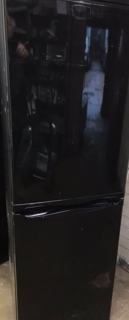 Fridge Freezer gloss black Hotpoint half and half size, good clean condition working perfectly possible local delivery and demonstrate 75 pounds.