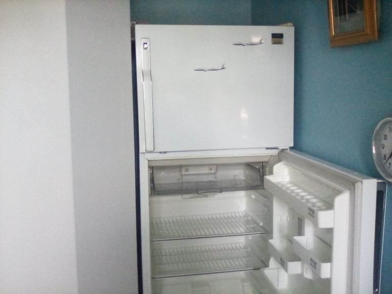 American product: Freestanding fridge freezer. Genuinely FROST FREE Excellent working condition, clean, all parts as new. Selling due to house move and replaced by under counter substitute. Will need 2 persons to lift.. Viewing highly recommended. Reduced from £300