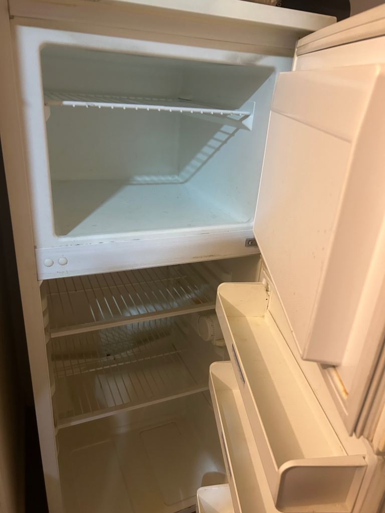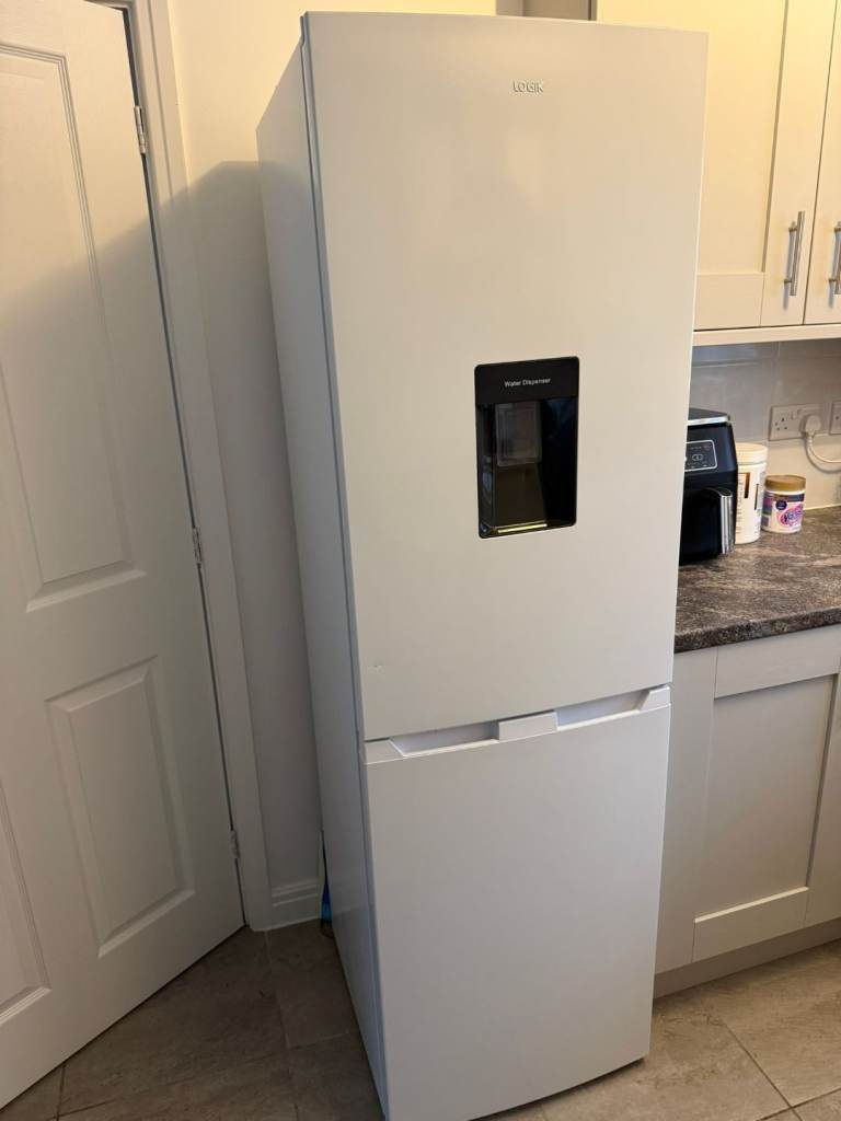 Fridge Freezer, good condition, works fine with no problems. A bit shabby looking on the outside. Can be cleaned up or used in garage/utility room