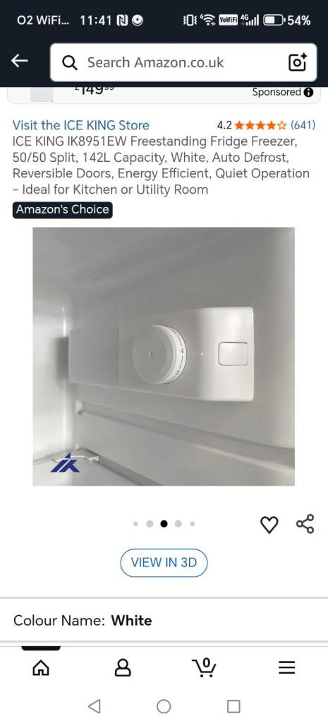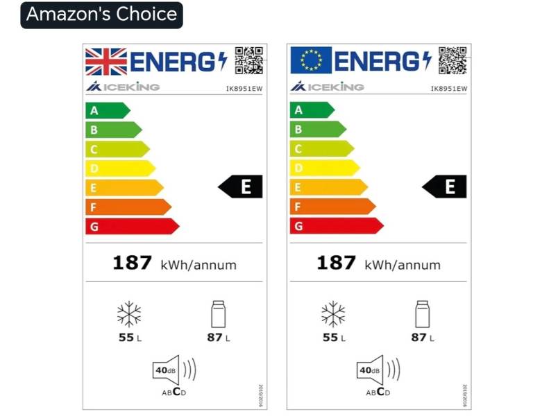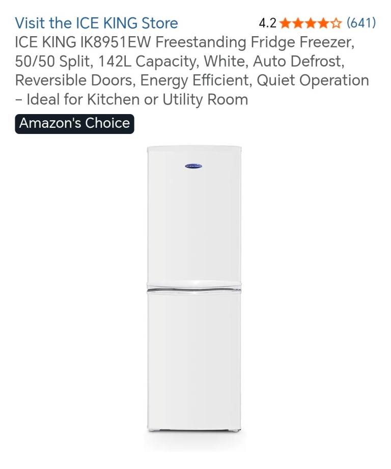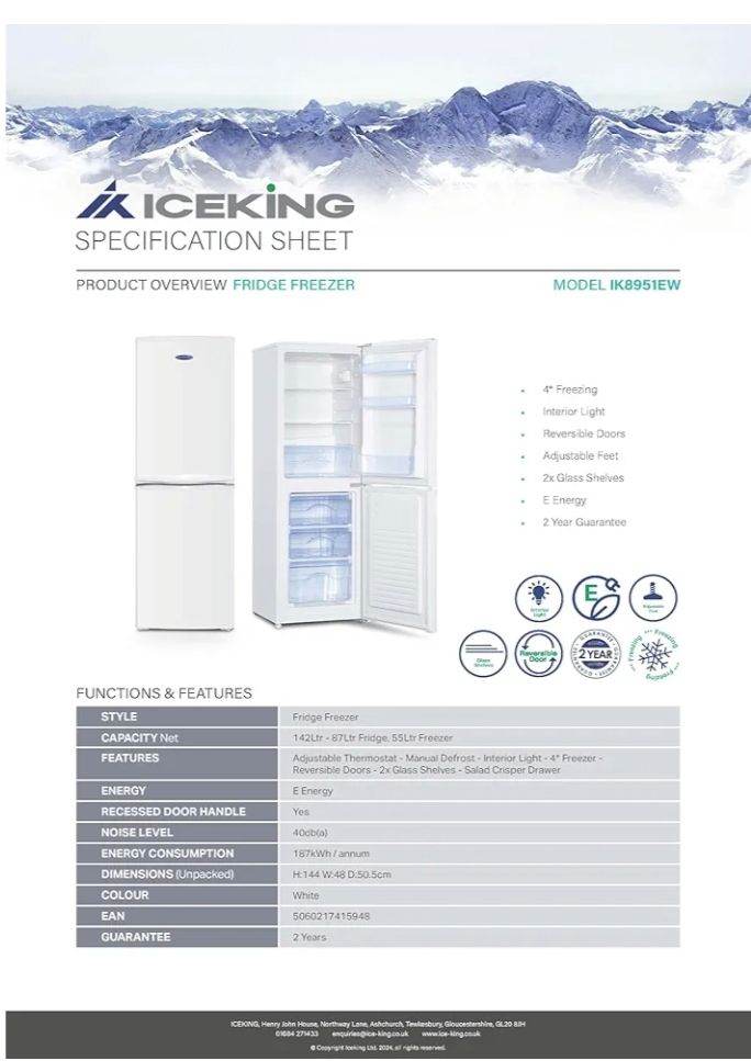 ICE KING IK8951EW Freestanding Fridge Freezer, 50/50 Split, 142L Capacity, White, Auto Defrost, Reversible Doors, Energy Efficient, Quiet Operation – Ideal for Kitchen or Utility Room