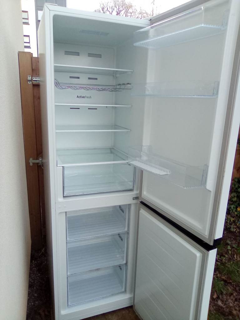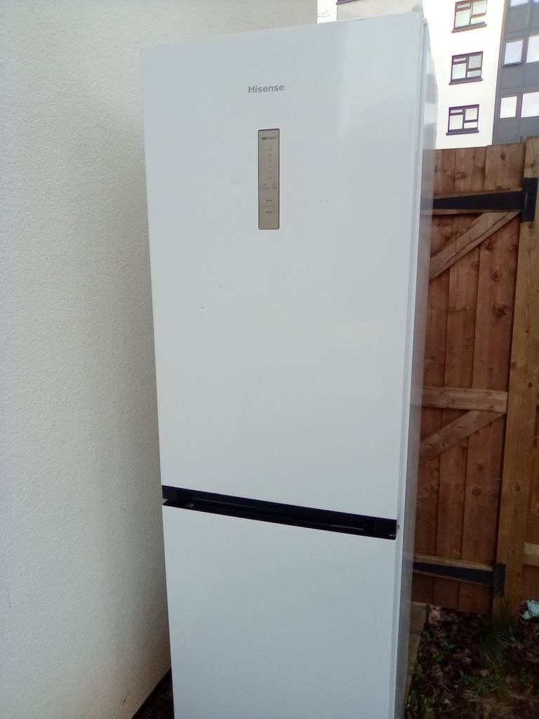 Hisense frost free large fridge freezer,76in tall & 60cm wide in perfect working order,does have a few small dinks on front,can be covered with small magnets,cost £565,18mts old,new home reason for sale,can deliver,