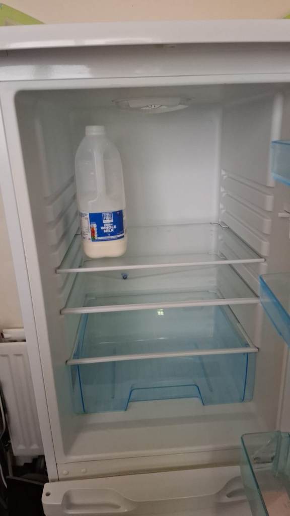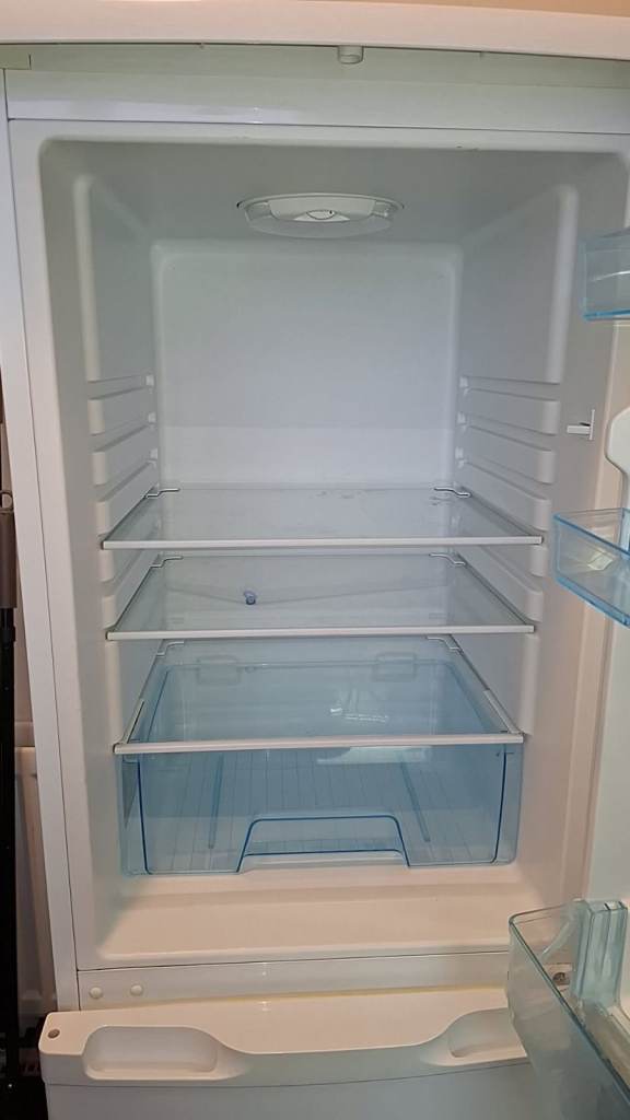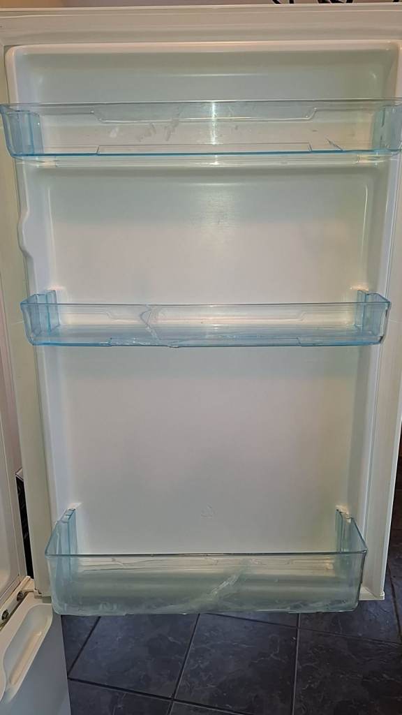 1 of the 3 compartments of the freezer has broken and is no longer there though there is a glass panel which you can use to place frozen goods onto. Otherwise it is in good condition and does the job.