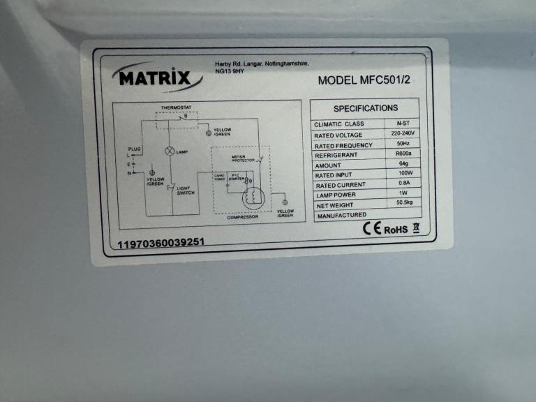 Matrix White Colour Integrated Fridge Freezer ππ»