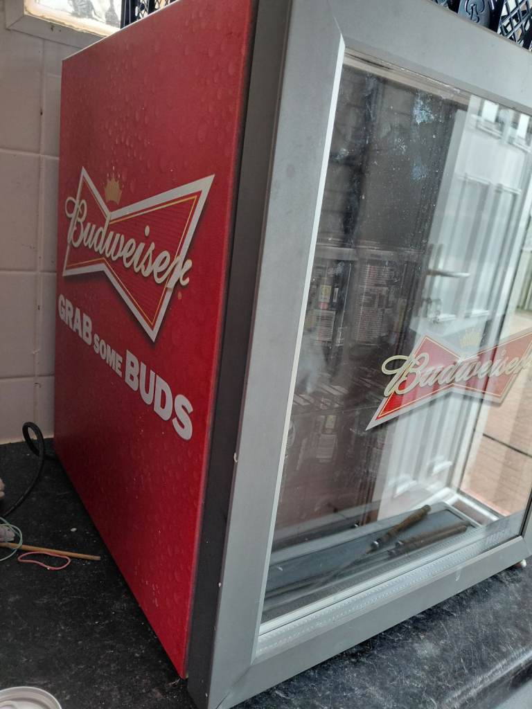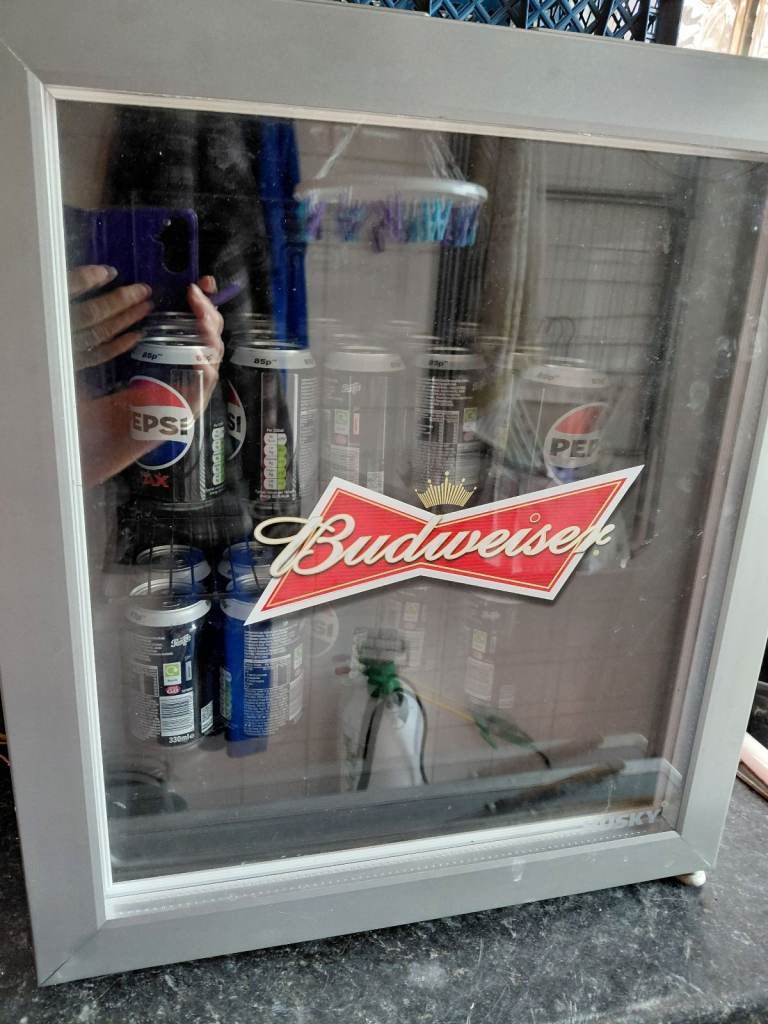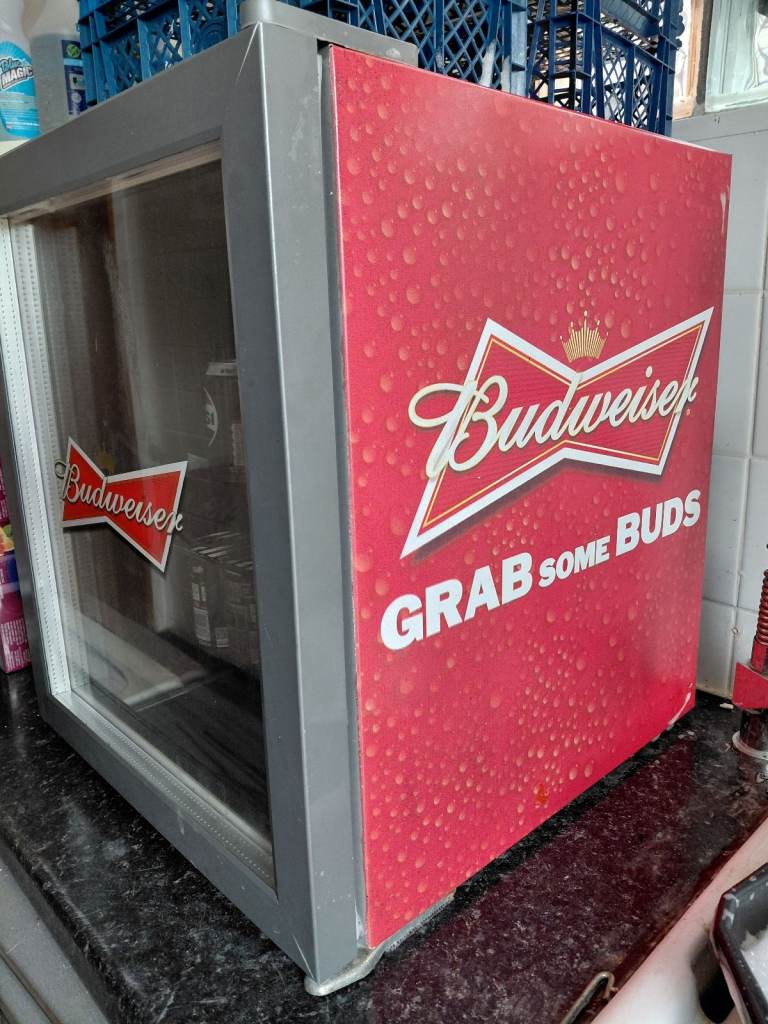Budweiser mini fridge, 2 shelves. Working order. Perfect for man cave.