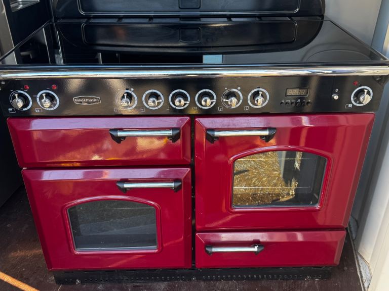 This attractive 110cm wide range style cooker from Rangemaster features electric ovens and a six zone ceramic hob. Finished in cranberry it will create a stunning focal point in your kitchen