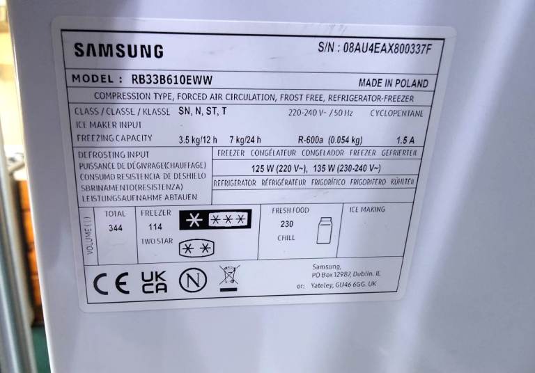 Samsung RB33B610EWW Frost Free fridge freezer.