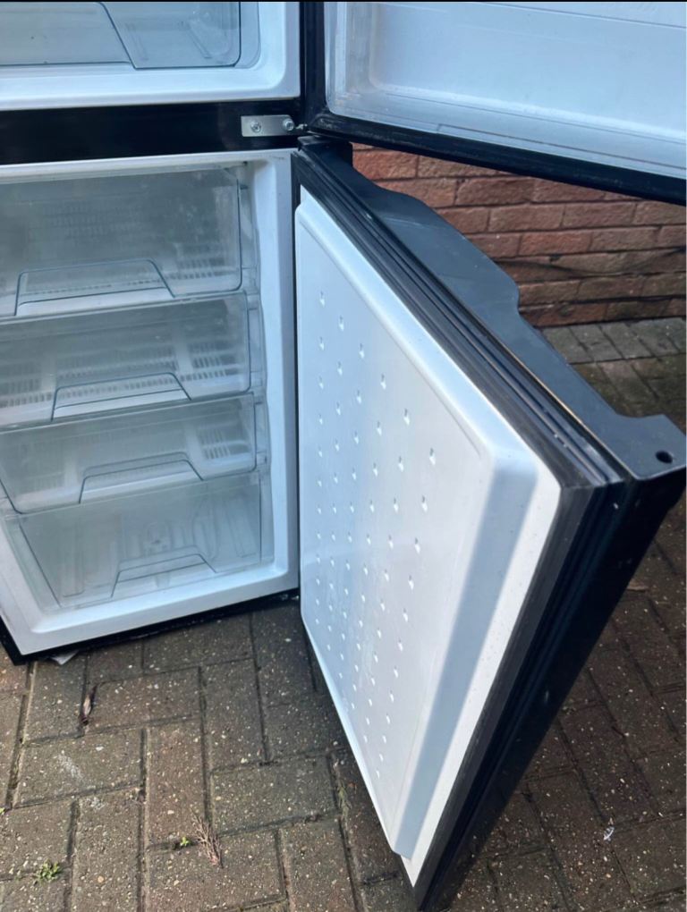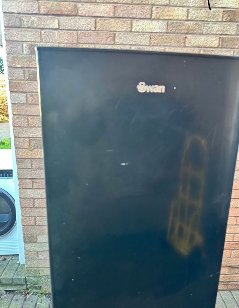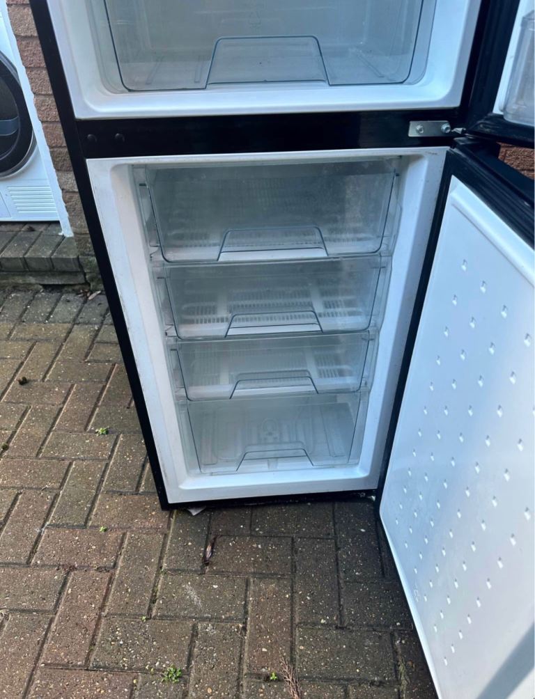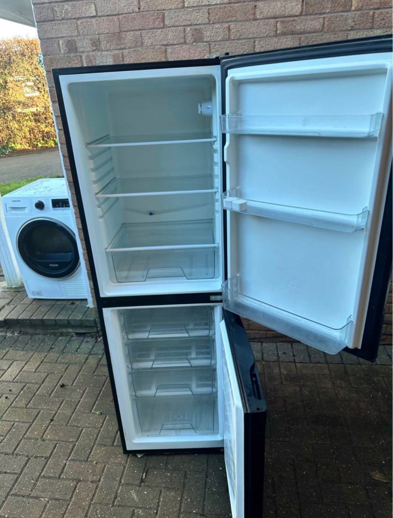 Swan black medium size fridge freezer. In excellent working condition. With 12 months warranty.