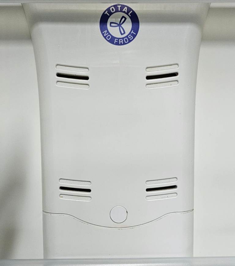 Whirlpool silver Total No Frost A class rated air circulation system fridge freezer inside light bulb needs replacing seal is little cracked but doesn't affect the use at all height 188cm width 60cm Depth 60cm perfect working order selling because had integrated appliances delivery available for a charge or you can collect