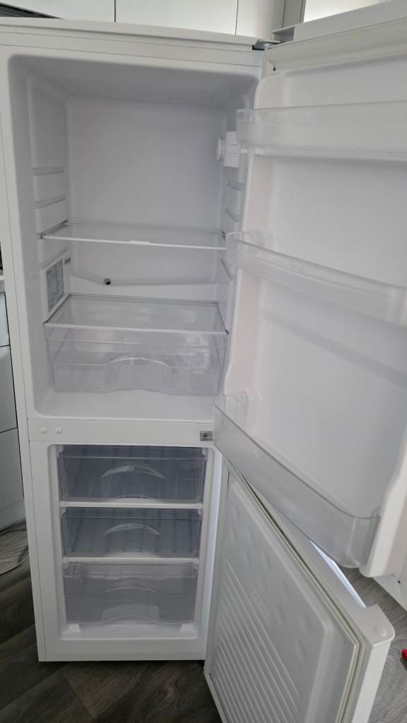 White fridge freezer in good working condition.