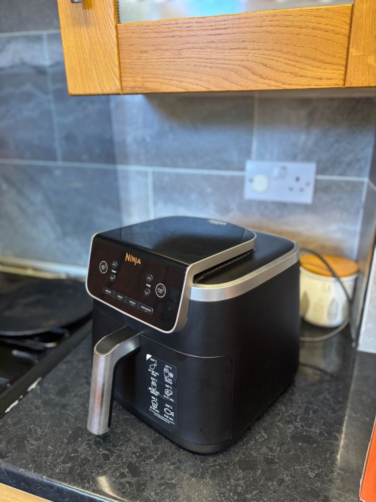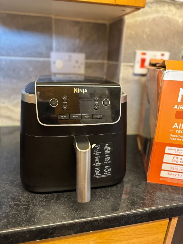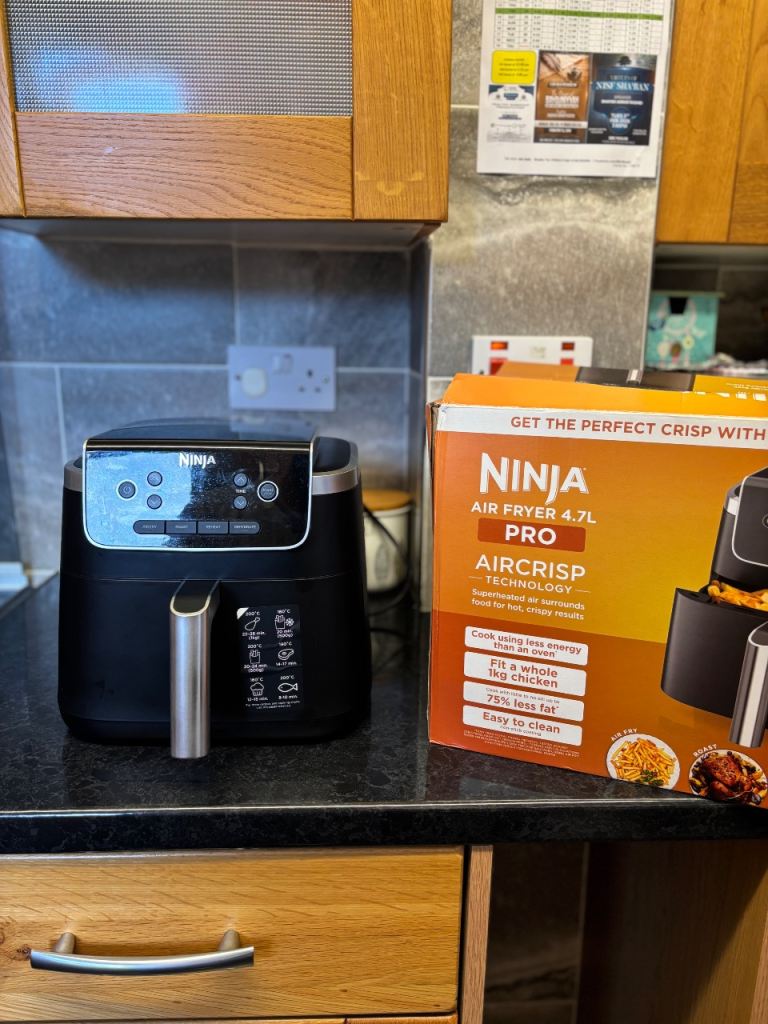 Vinted - The Brand New Ninja Air Fryer Pro AF140UK is a powerful appliance that offers a 4.7L capacity, making it ideal for cooking and dehydrating a variety of foods. With a maximum temperature of 240°C and a minimum temperature of 40°C, this electric fryer is efficient. The black colour, compact size (26.5cm height), and weight of 4.8kg make it a convenient addition to any kitchen. Featuring air fry, roast, dehydrate, and reheat functions, this Ninja air fryer is a must-have for those looking to upgrade their cooking experience.