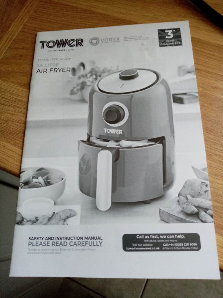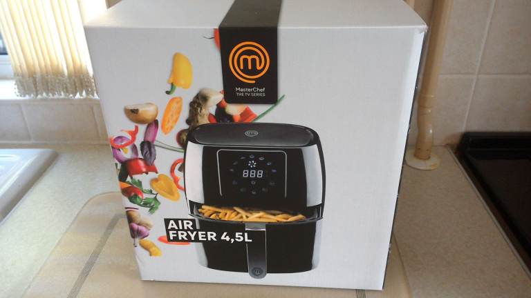 Model ON400UK air fryer, 1760 Watt 5.7 litre. Has extra racks and inserts, plus recipe book.