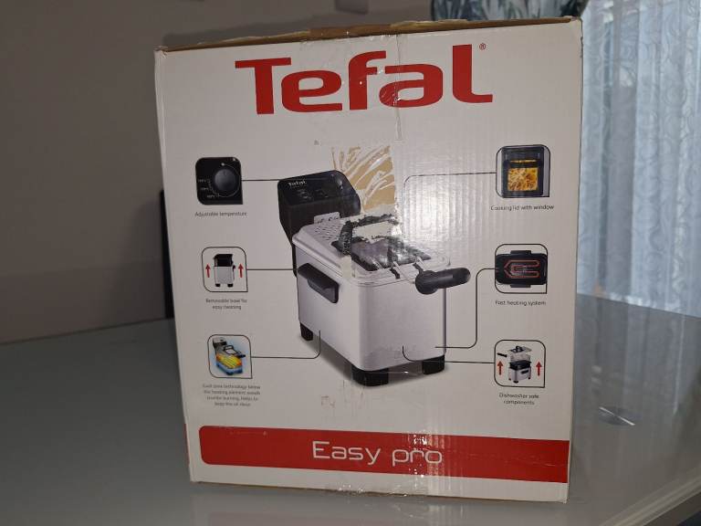 Tefal Easy Pro F59-M deep fat fryer for sale. Not used, in original box, with instruction manual. Was stored out of box next to stove for a while, so has had some food splashes washed off, but otherwise as good as new.