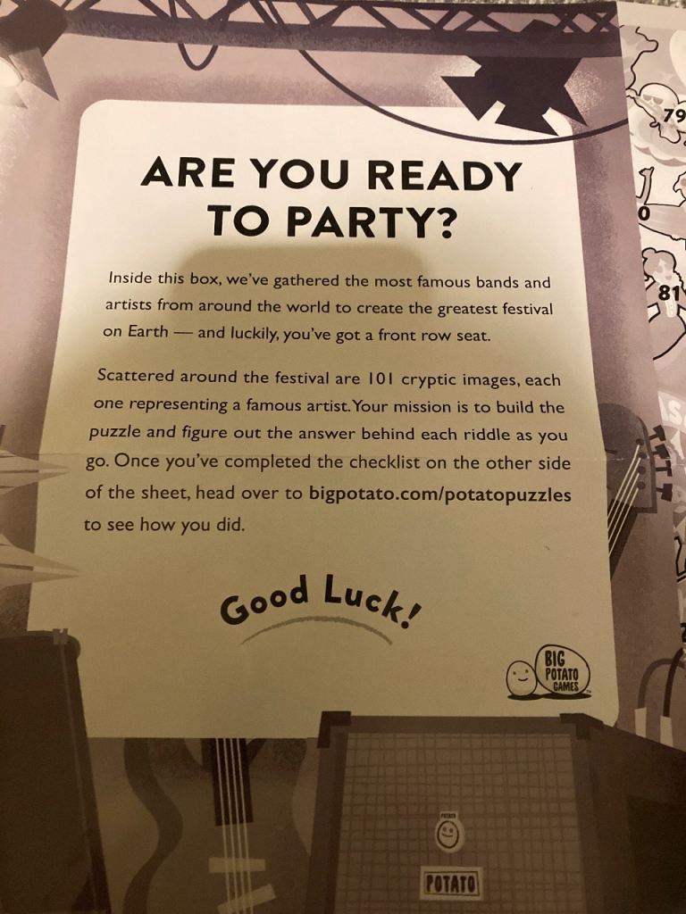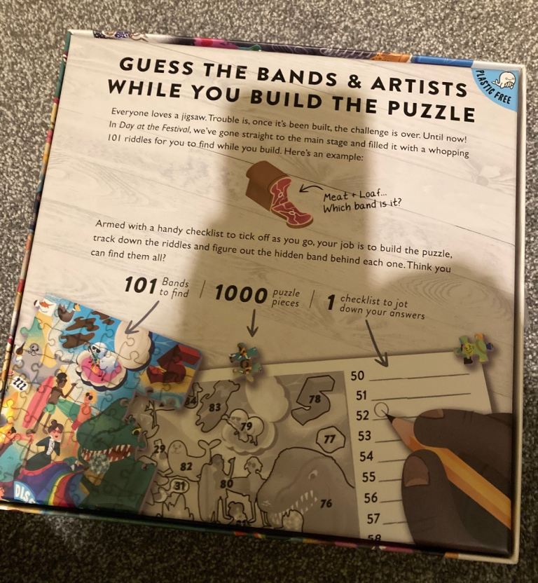 Great puzzle with riddles. Find the bands with a checklist. Checklist not used.