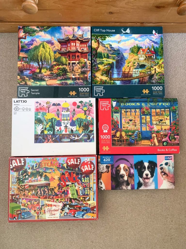 6 adult jigsaw puzzles, couple of tough ones in there!