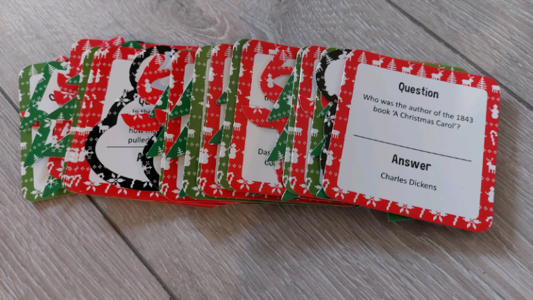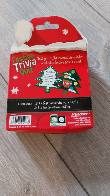 Christmas festive trivia quiz, 50 cards in total. Includes instructions. Collection Canford Heath