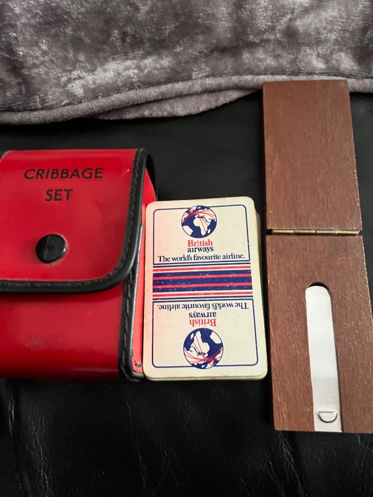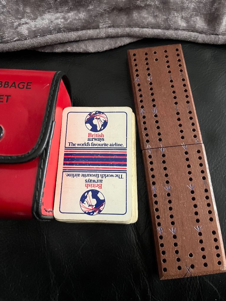 Vintage cribbage set with folding board pins & vintage British airways cards in leather case welcome to view afternoon/evening in mospark Glasgow no posting no PayPal no transfers