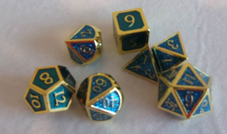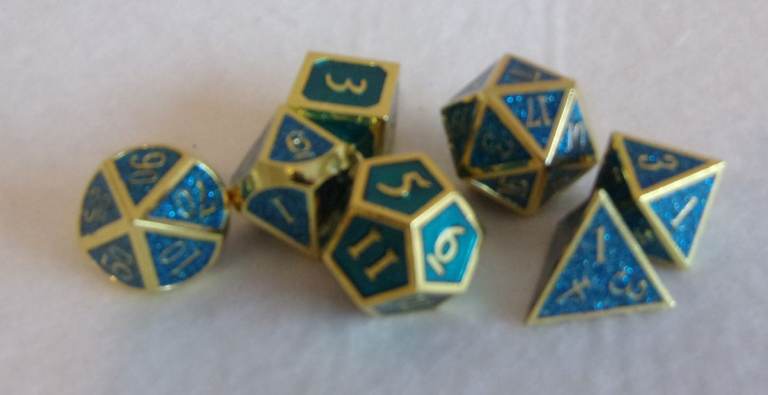 Used a little but as new, X7 heavy metal dice! These are good quality metal dice not plastic!